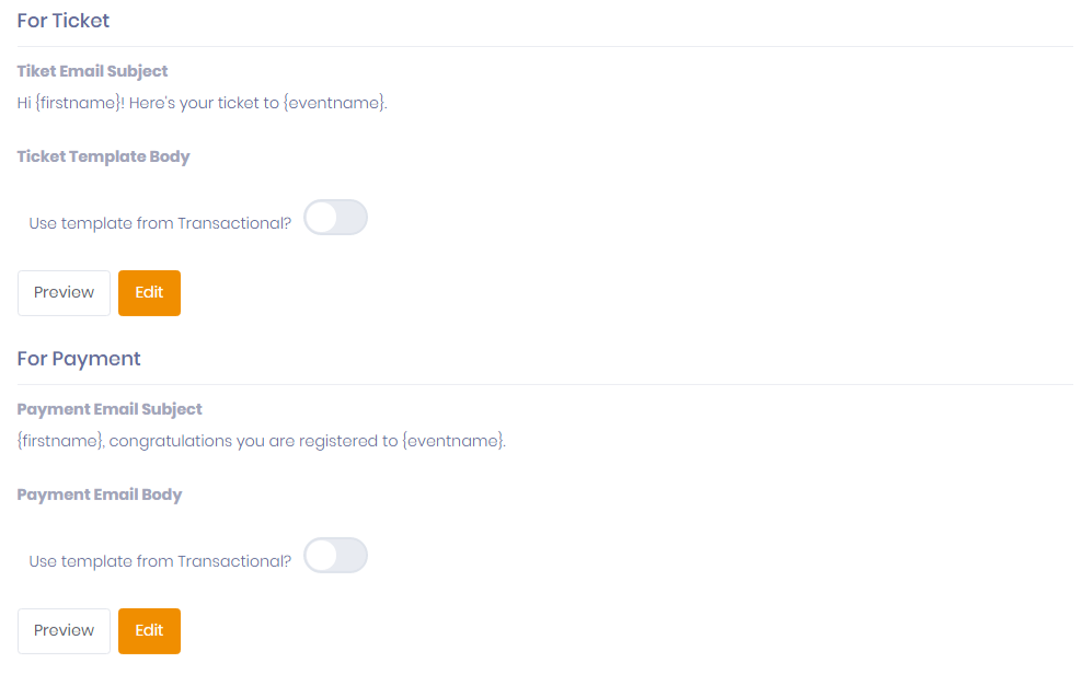 You can see a preview of an e-mail and also edit it. You can also use templates from transactional emails if you have them.