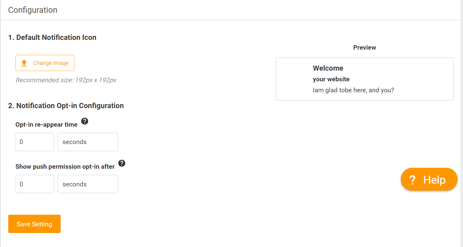 Show Push Permission Opt-in After: Settings to display the first opt-in when visitors visit your website. Here you can only select the time in seconds to display the opt-in.